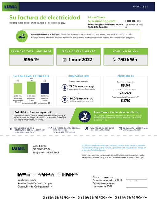 Factura de LUMA (en todas sus partes)
